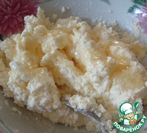 Творог смешиваем со сметаной (1 ст. л.) и медом.