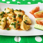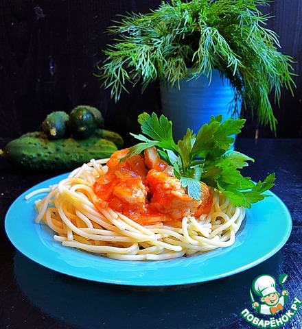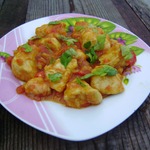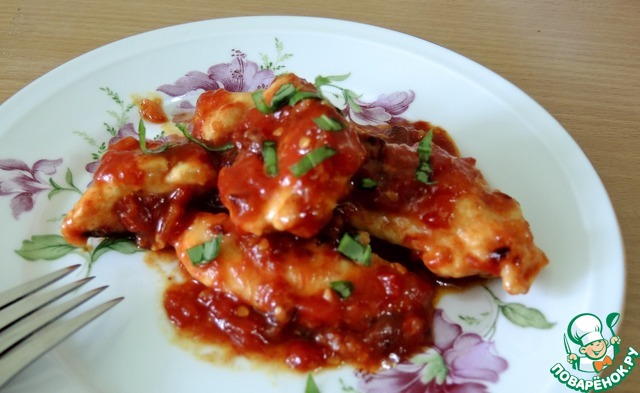 Получилась очень нежно , с пряным соусом... Единственное отступление : я курочку обваляла в специях вместо муки