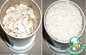 Пока варится мясо, тыквенные семечки смолоть в порошок.