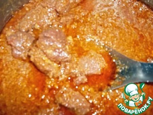 Жарить, время от времени помешивая, до испарения жидкости. У меня на это ушло 20 мин. Добавить томатную пасту (по желанию), пожарить еще минутку.
