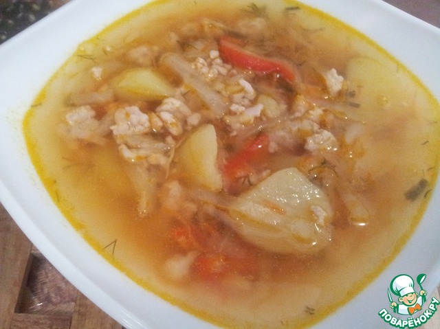 На этапе готовки впечатление: щи с фаршем и запредельным количеством чеснока.