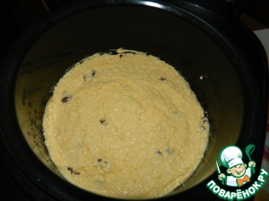 Добавляем изюм. И выливаем в чашу мультиварки. Готовим на режиме "Выпечка" 50 минут.