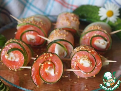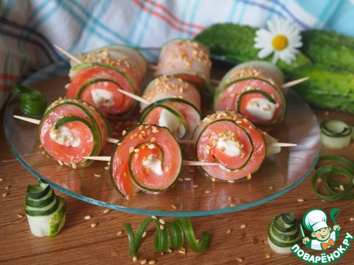 Рецепт «Огуречные рулетики с форелью и сливочным сыром»: