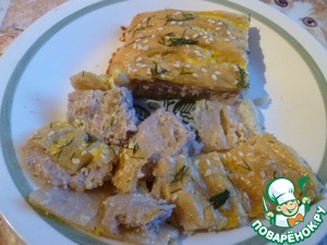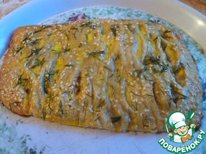А здесь слойка посыпанная сверху мелко нарезанным укропом.