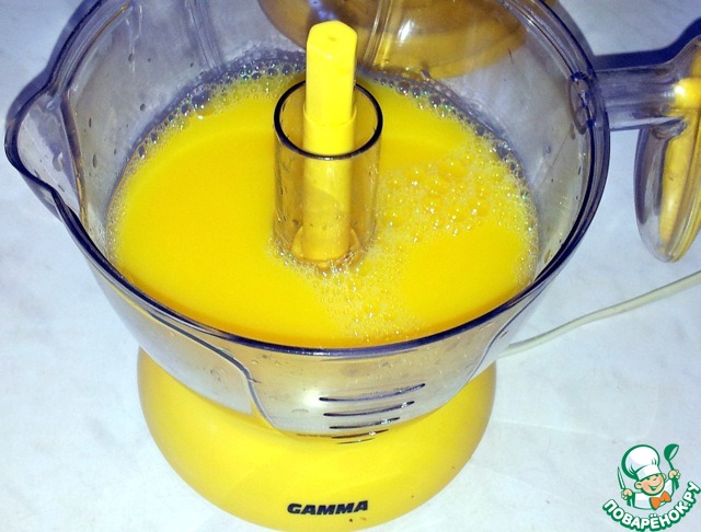Фрукты разрезать пополам и отжать сок соковыжималкой для цитрусовых. У меня получилось 750 мл натурального сока.