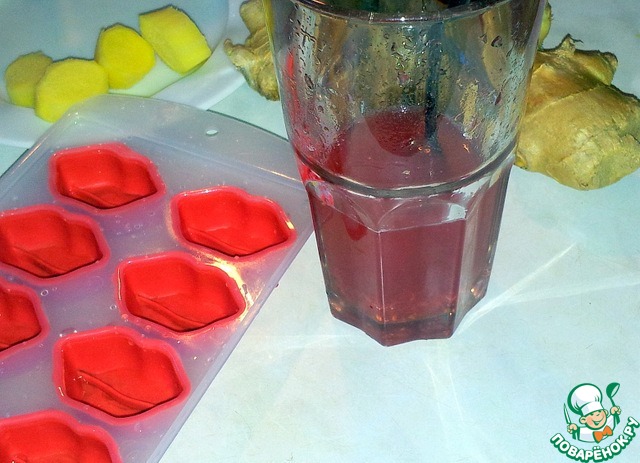 Сахар и воду не добавляла, всего здесь в самый раз. Четвёртая порция оказалась более вкусной, насыщенной и ароматной, т. к сок хорошо охладился, имбирь настоялся и лёд хорошо заморозился.