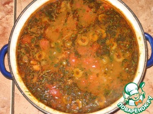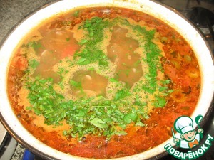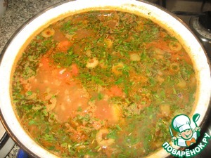 Ещё провариваем пару минут и всыпаем остаток зелени.