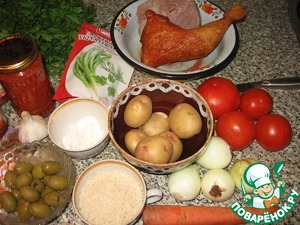 - Окорочок куриный (Копчёный или другое копчёное мясо. В Харчо) — 250 г