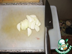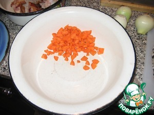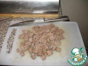 Если мясо уже можно удержать - режем его на небольшие кусочки.