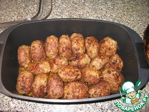 Затем выкладываем наши тефтели и заливаем остатком заливки. Она покроет их почти полностью.