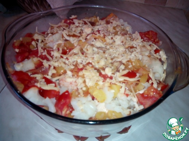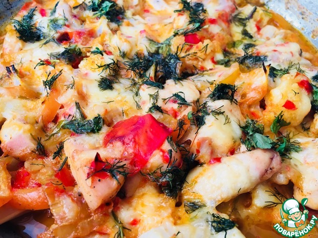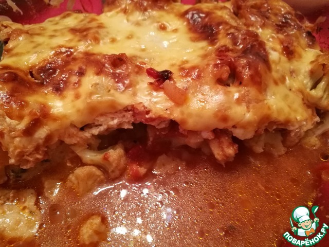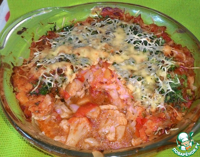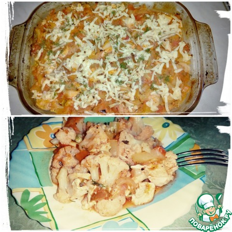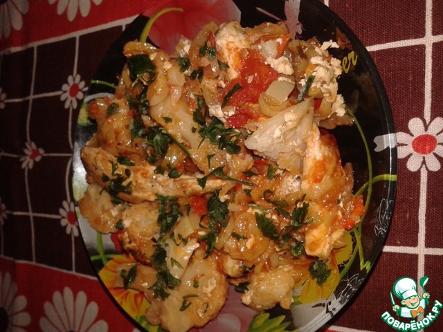 Рецепт «Цветная капуста с курицей в томатно-овощном соусе»: