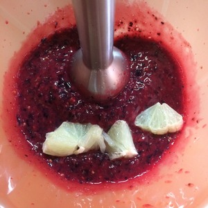Перемалываем ягоды блендером в пюре, добавляем лимон, перемалываем еще раз.
