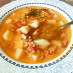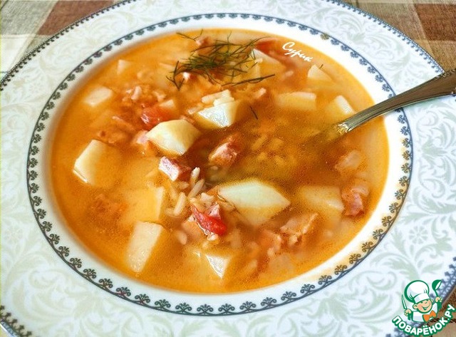 Легкий, аппетитный рисовый суп с помидорами, готовится очень просто. Суп можно сварить на бульоне, но для быстроты я сварила его на воде и добавила немного колбаски. Первое блюдо получилось на славу, мои детишки кушали с огромным удовольствием. Приятного вам аппетита!