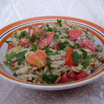 Баклажаны осторожно перемешиваем с чесноком, обжаренным луком (добавляем вместе с растительным маслом, в котором жарился), грецким орехом. Все хорошо перемешиваем, затем добавляем помидоры, пробуем, досаливаем, если надо. Можно добавить измельченную зелень по вашему вкусу. Очень сытная закуска, вкусна в холодном виде.