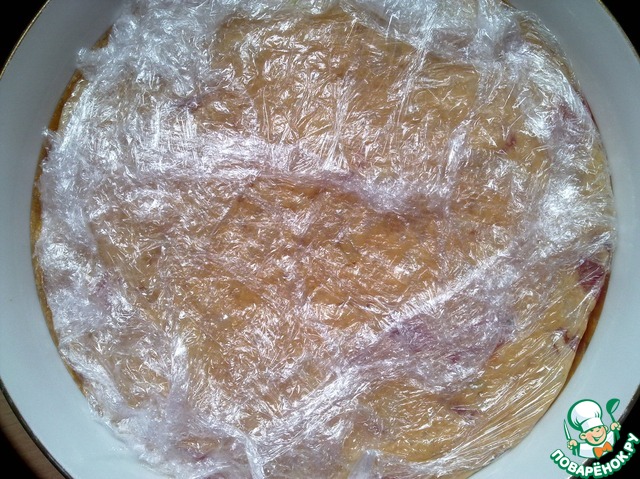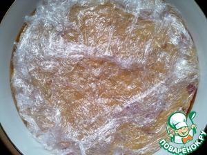 Форму с салатом накрыть пищевой плёнкой и поставить на 2 часа в холодильник.