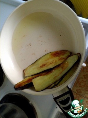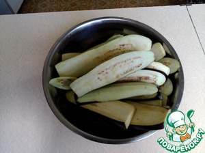 Баклажаны нарезать вдоль на пластины шириной 0,5 см.