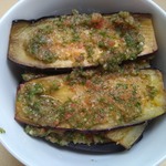 Положите на ½ баклажана 1 ч. л. измельченных орехов.
