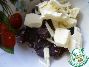 Я беру 4 кусочка шоколада, вы можете больше. Добавляем сливочное масло и ставим в микроволновку на разморозку на пару минут. Или же на водяной бане растопить. -