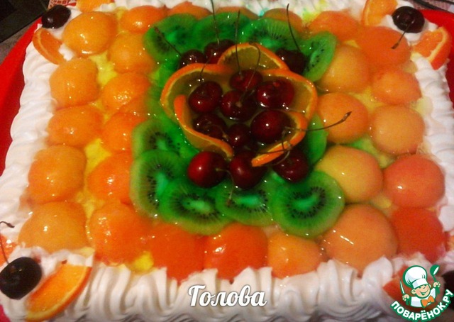 У нас стоит жара под 40 - естественно не хочется печь... Но мне нужно было испечь сестре на мероприятие торт и я стала искать такой рецепт, чтобы было быстро, без заморочек и по-летнему, т. е. с изобилием фруктов. Покопавшись в интернете, я нашла такой, но немного изменила по своему вкусу. Не знаю насколько он у меня "тропически м" получился- т. к. из тропических фруктов присутствуют только апельсин и киви, а остальные все наши, родные... Но тем не менее вкусно! Мои назвали его торт-мороженое, потому что крем всем напомнил вкус советского сливочного пломбира. И еще одно: ингридиенты даны на большой торт.