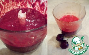Взбить блендером вишню в однородную массу и при помощи марли выжать 130г свежевыжатого сока.
