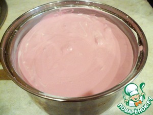• И все сверху заливаем вишневой массой и ставим в морозилку, оставив небольшую часть застывать в отдельной чаше для декора.