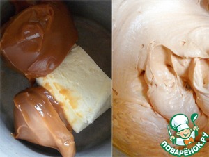Сливки взбить со сгущенкой до пышной устойчивой массы.