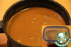 Ставим на средний огонь и подогреваем, периодически помешивая, до полного растворения шоколада и кофе (не доводим до кипения), до получения однородной гладкой консистенции. Сразу переливаем в удобную посуду и герметично закрываем. Даём остыть до комнатной температуры и отправляем в холодильник на минимум 12 часов.