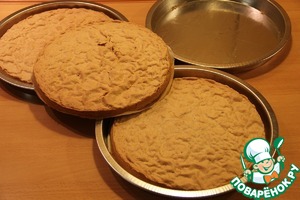 Открываем духовку и даём немного остыть. Коржи опадут и сожмутся (это нормально)