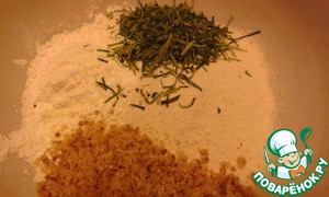 Смешиваем муку, одну и другую, зелень и смесь из блендера, добавляем соль по вкусу.