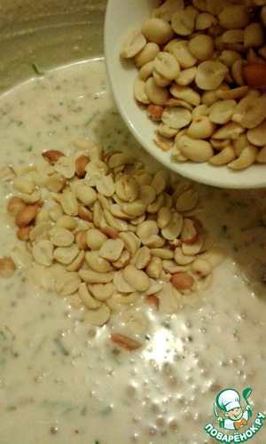 Каждый раз перед тем, как выложить смесь на сковородку, перемешивайте, орехи и арахис быстро оседают на дне. Столовой ложкой наливаете вдоль верха бортика, смесь стекает вниз и зажаривается в масле. Надеюсь, по фото понятно :)