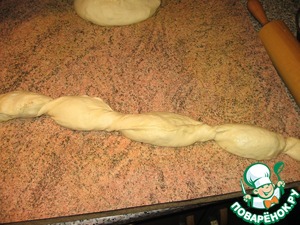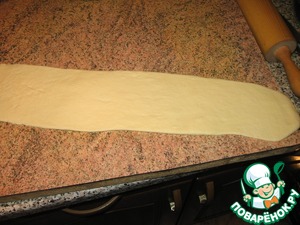 Тесто легко режется и раскатывается на небольшие колбаски. -