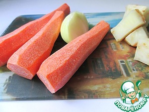 Морковь и сельдерей очищаем, режем небольшими кусочками. Я использовала замороженную заготовку сельдерея.