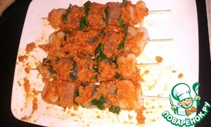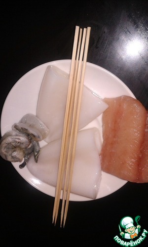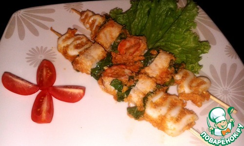 Рецепт «Шашлык (кебаб) из морепродуктов в орехово-томатном соусе»:
