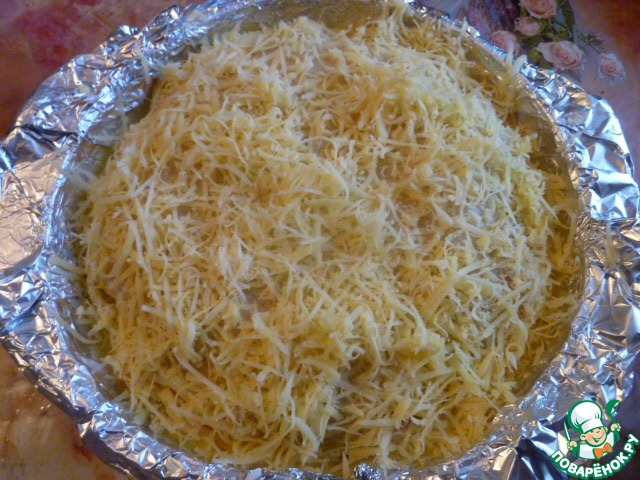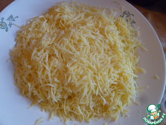 Сверху щедро посыпаем твердым сыром.