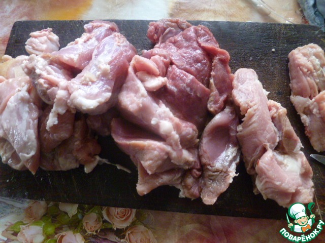- Мясо (любое, у меня свинина) — 800 г