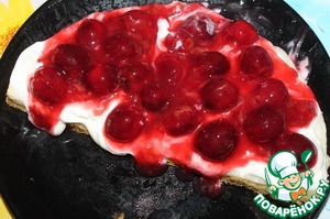 На одну половину выложить вишневый кисель (на безе, у меня чуть смазано сливками, но так и подтекать больше будет).