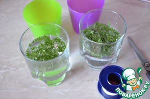 Для начало подготовим ледяные стаканчики. Зелень петрушки вымыть, порубить.