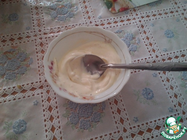 • Приготовить соус: в майонез добавить специи и чеснок.