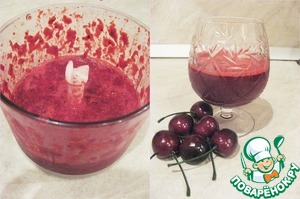 Вишню достаем из морозилки, размораживаем и блендером измельчаем в однородную массу,
