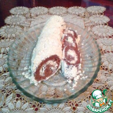 Помогая себе пленкой свернуть плотный рулет. Завернуть в пленку и убрать в холодильник, чтобы рулет застыл.