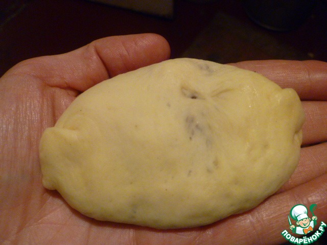 Из каждого кусочка теста делаем лепешку, кладем на нее начинку. Не жалеем, тесто не рвется!