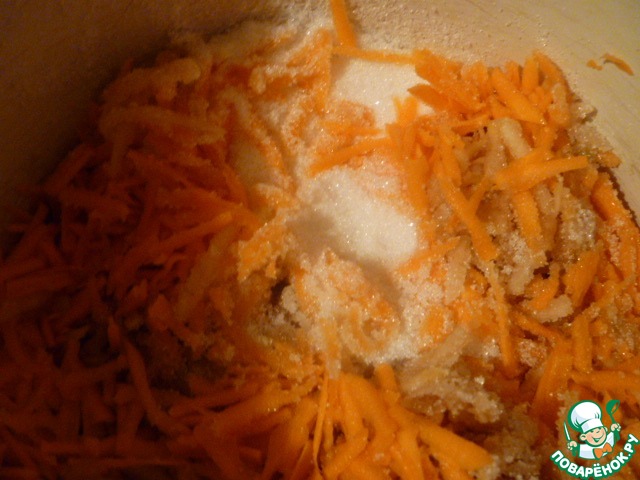 Выкладываем в кастрюлю и засыпаем сахара. Если яблоки кислые, то сахара на 0.5 стакана больше.