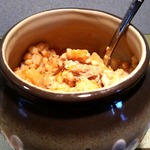 На мясо выложить кашу, в каждый горшочек долить по 3-4 ст. л. воды (или бульона) и положить сверху по небольшому кусочку сливочного масла.