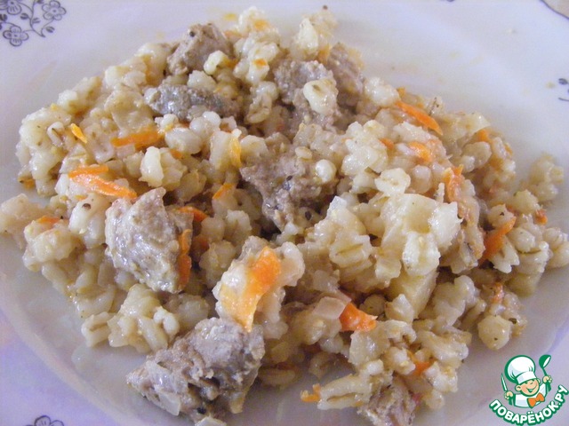 Перловую крупу промыть и залить водой на 2 часа. Затем сварить до полуготовности. -