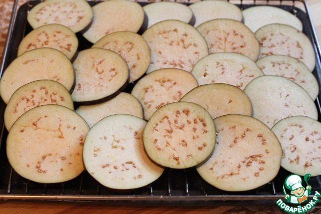 Баклажан помыть, нарезать кольцами толщиной 1 см.
