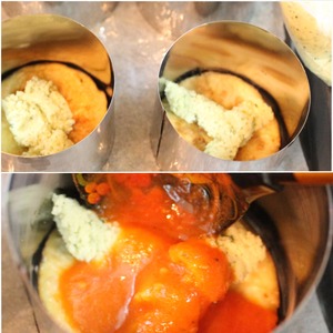 на него выдавливаем примерно столовую ложку сырного слоя,