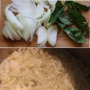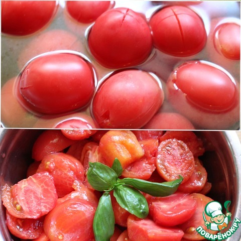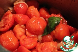 Потом пюрируем полученный соус с добавлением пары листиков свежего базилика, не забываем посолить, но не много!!!