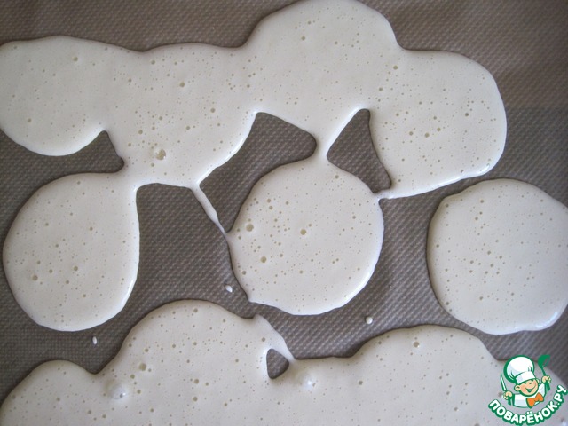 Половину теста выложим на противень произвольно, оставляя пустые места.