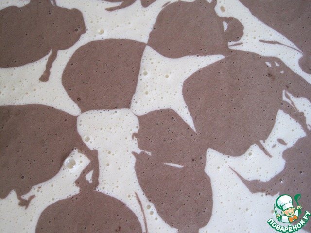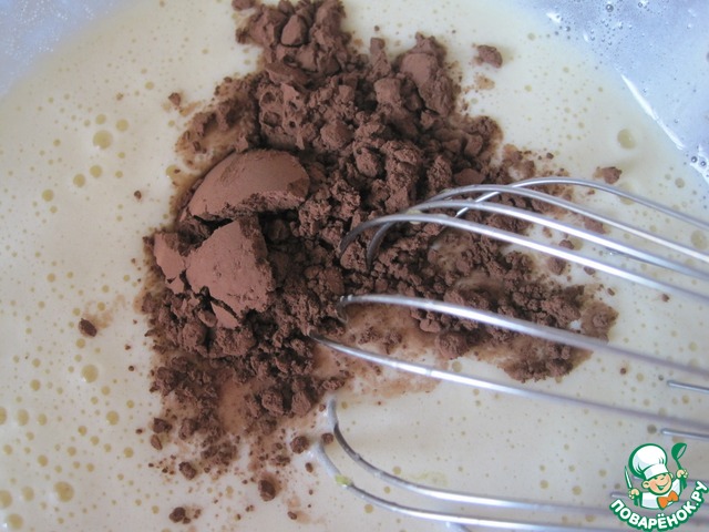 В оставшуюся половину теста быстро, но аккуратно вмешаем какао-порошок.