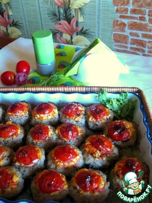 Какое разнообразие блюд можно позволить себе в сезон свежих овощей! Предлагаю вам приготовить котлетки, запеченные на кружочках баклажан, начиненные грибами, с шапочкой из плавленного сыра с ароматным чесноком, под дольками сочных помидоров.